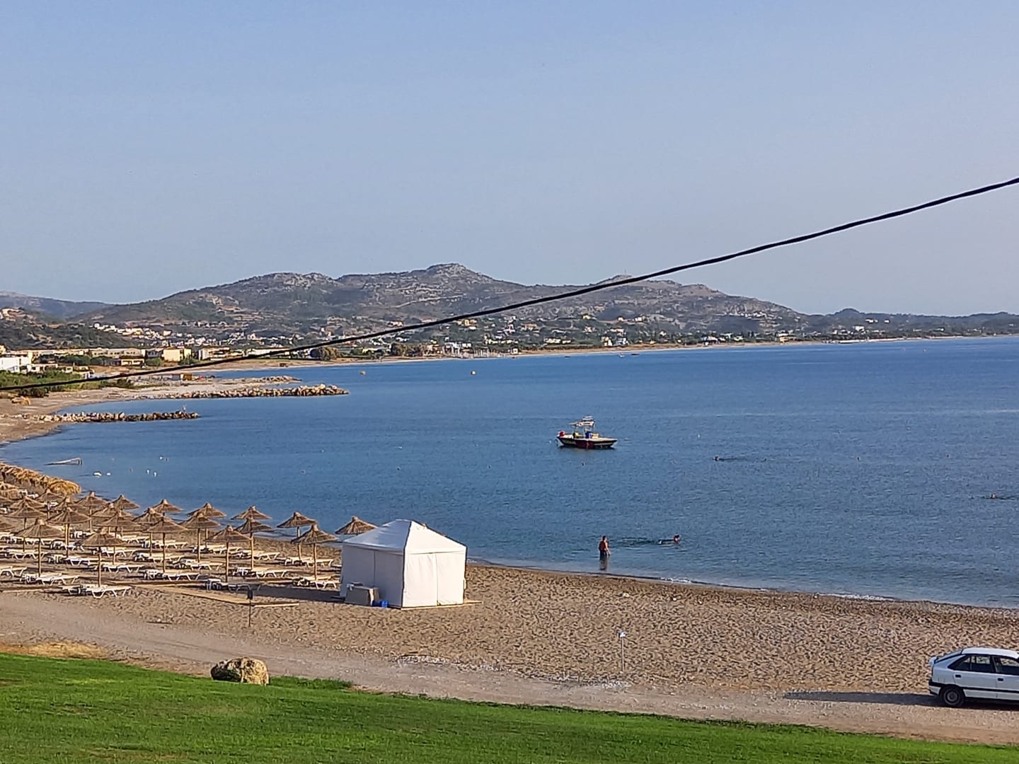 Ein schöner Strand und man braucht keine Liegen zu reservieren. Es sind ausreichend Liegen vorhanden und Manoli kümmert sich ab 11.00 Uhr um die Wünsche der Gäste nach Getränken und bringt Sie an die Liegen.