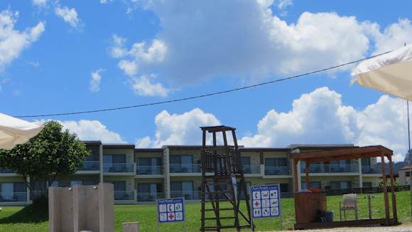 Blick vom Strand zum Hotel