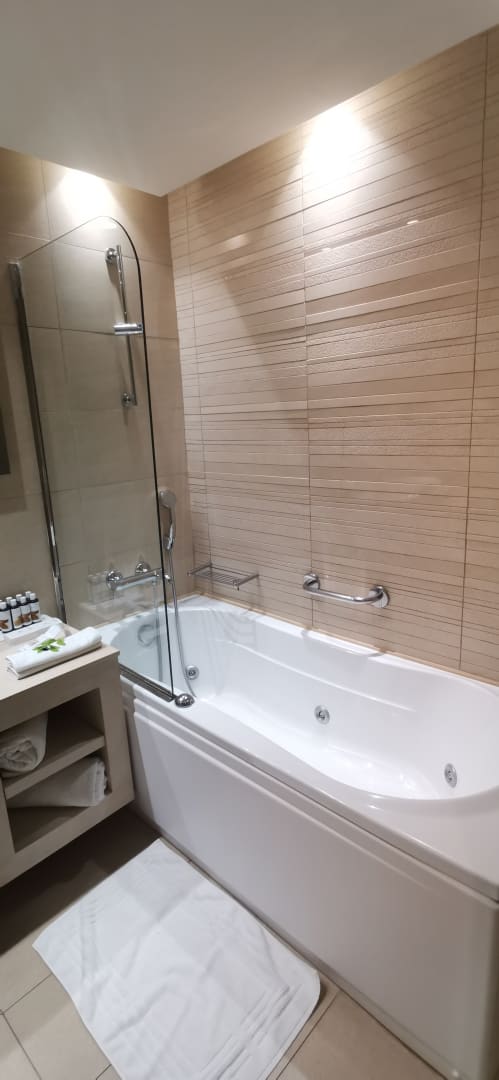 Bad mit Badewanne und Duschwand