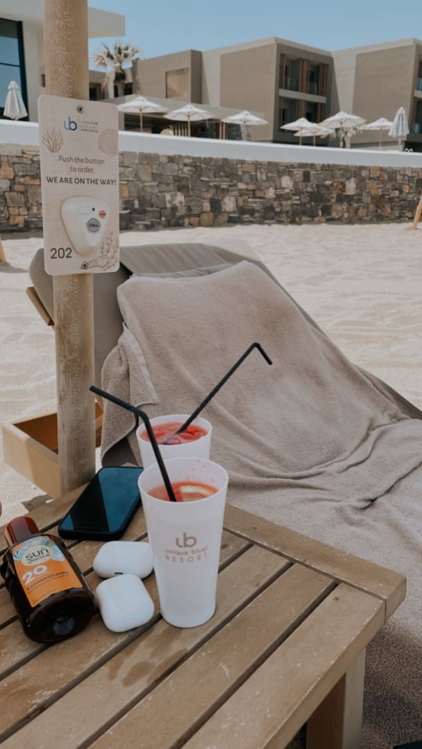 Strand mit Cocktails und Knopf zur Bestellung (funktionierte leider bei uns nicht)