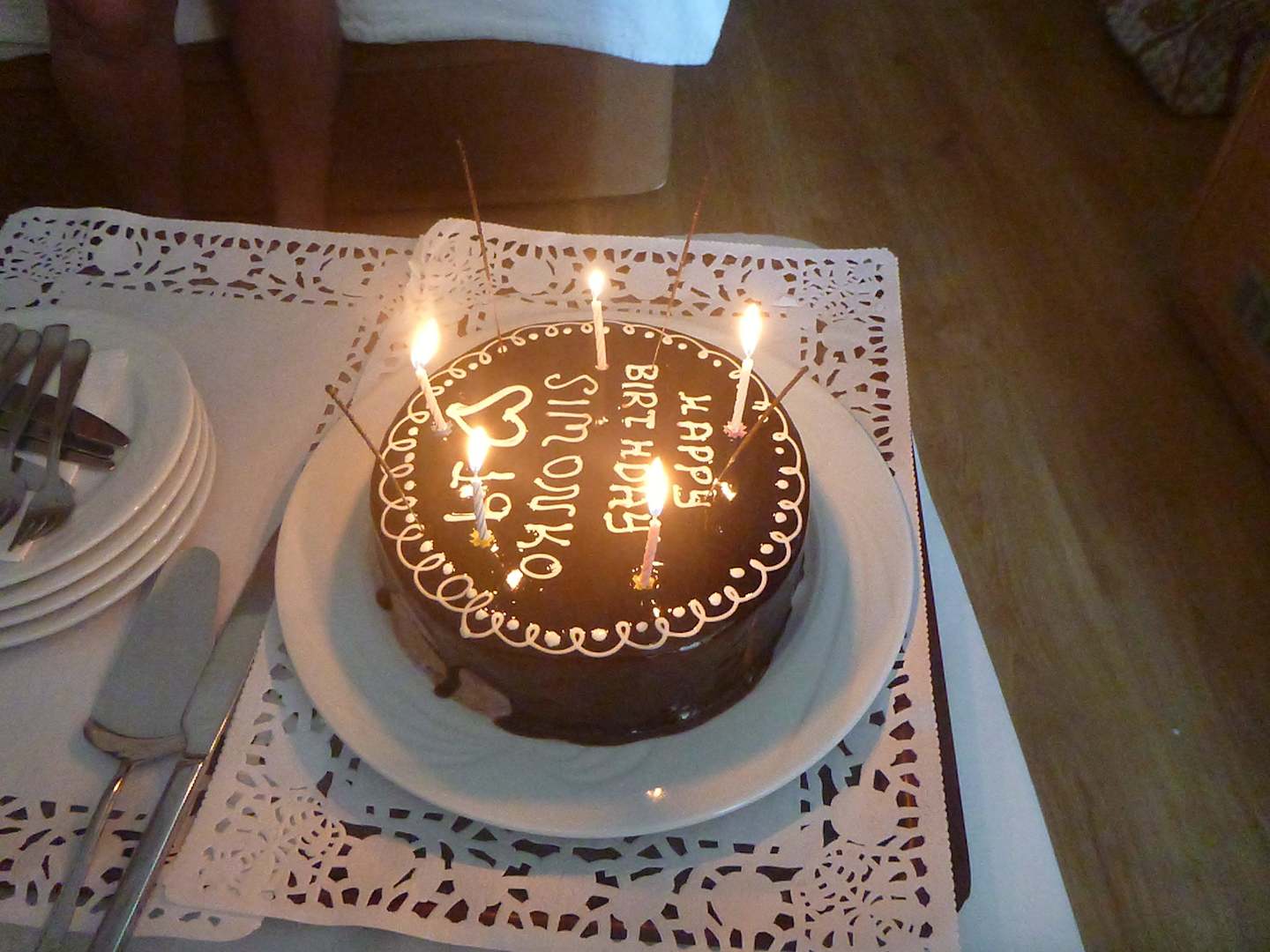 DortNarozeninové překvapení pro kamarádku (nechali jsme udělat za poplatek, k tomu přinesli i dvě lahve vína a plný talíř ovoce).