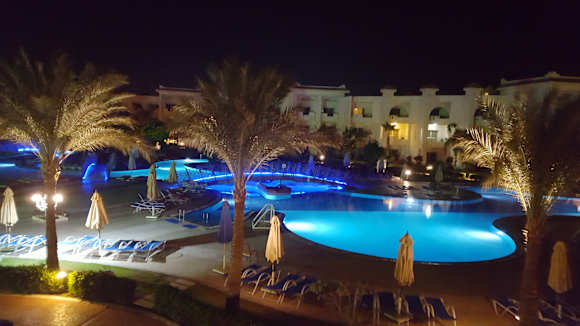 AusblickPoollandschaft am Abend,sehr gepflegt.
