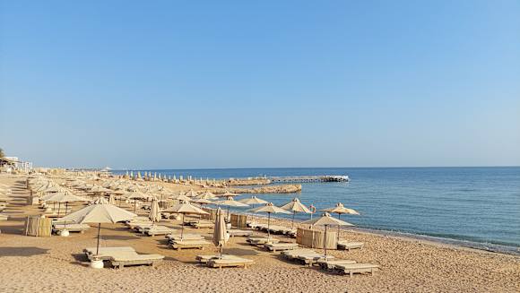 Strand mit Steg zum Riff und Schnorcheln/ Schwimmen