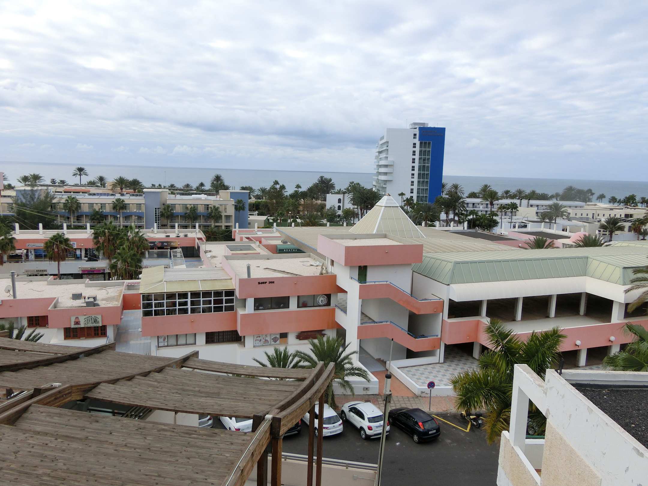 Ausblick auf das gegenüberliegende Einkaufcenter und zum Meer
