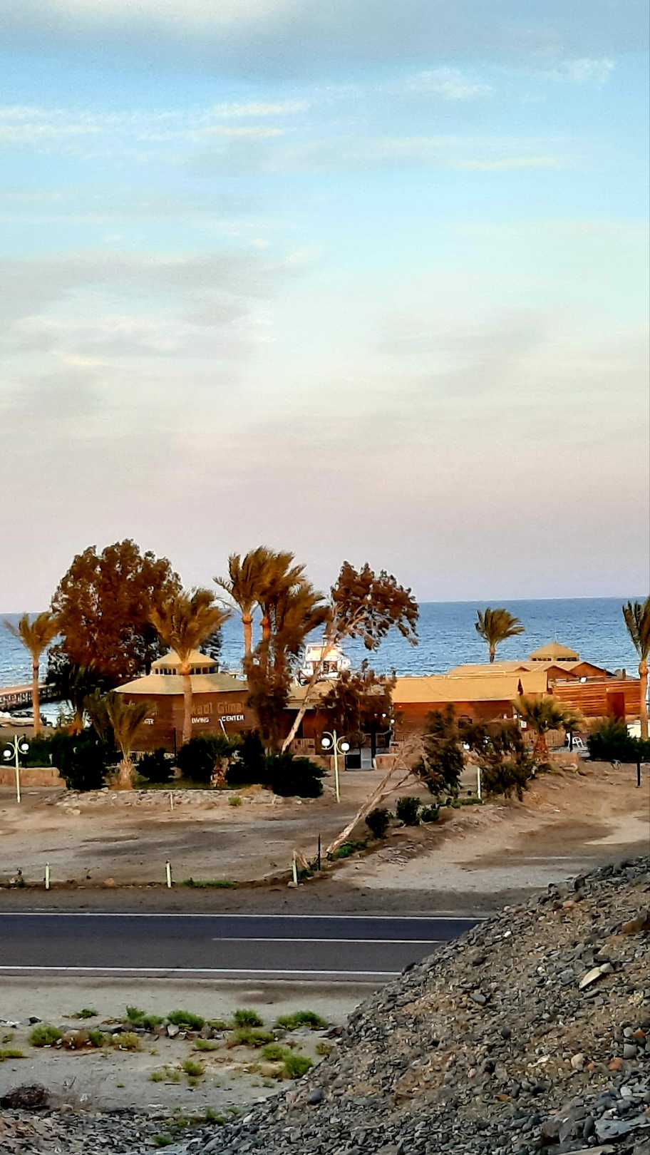 Blick auf die Tauchbasis vom Aussichtspunkt andere strassenseite