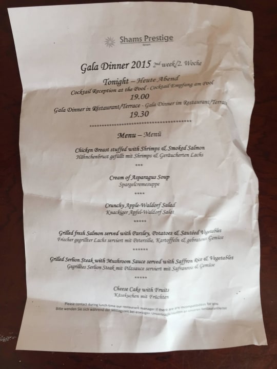 Menü zum Gala Dinner
