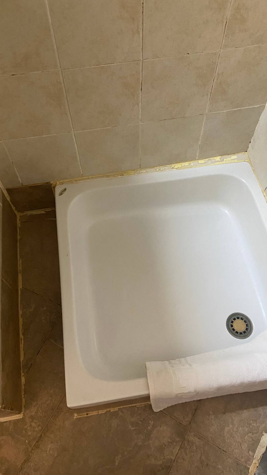 Dusche falsch konstruiert. Wasser fliesst genau in Spalte und der Boden wird nass.