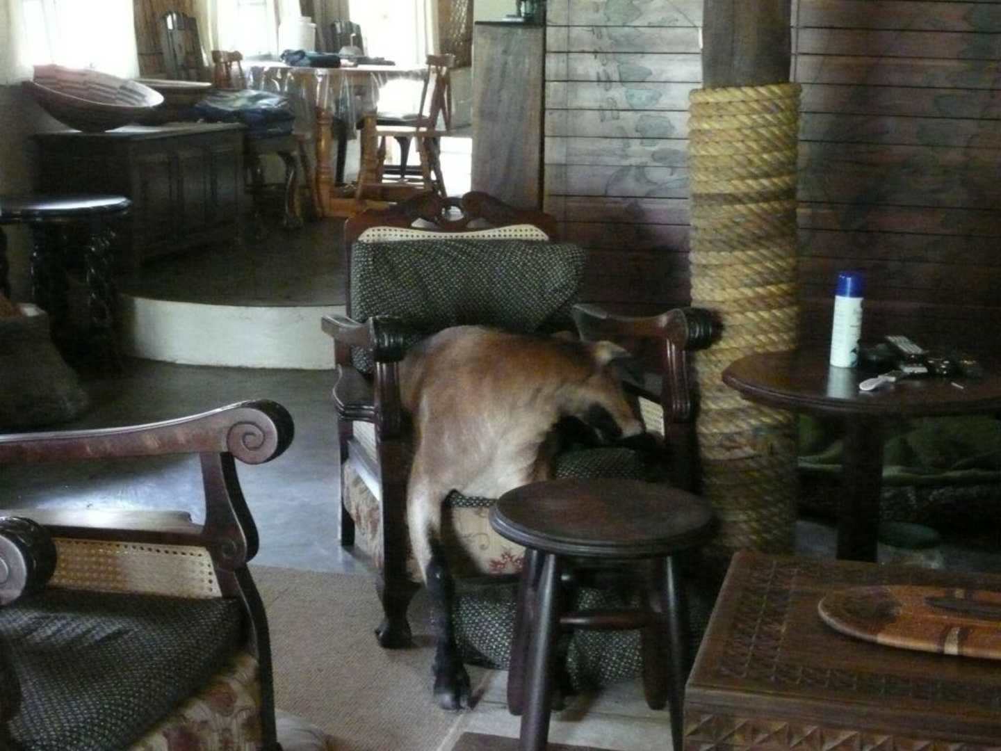 Ziegenbock statt Gäste im Sessel
