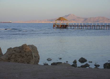 Mostek do snurkowania, w tle wyspa Tiran