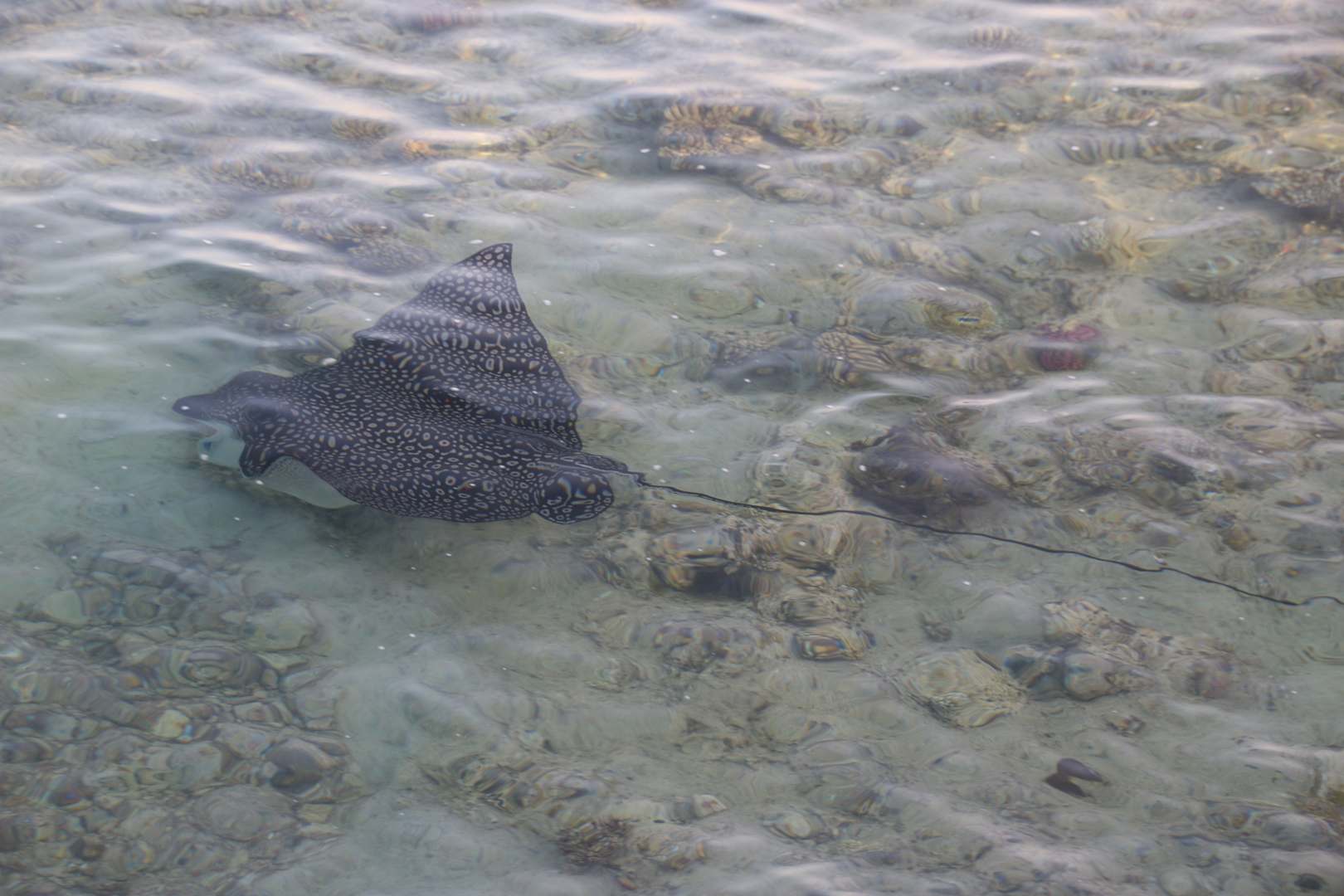 Gefleckter Adlerrochen am Riffdach