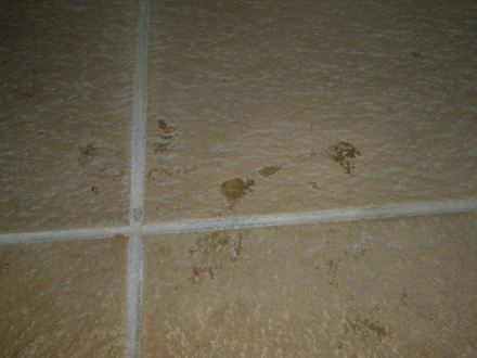 schmutziger Boden (an drei Tagen in Folge waren die Flecken da)