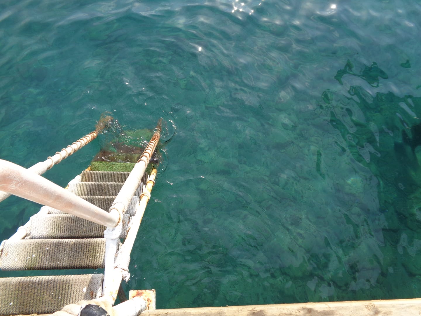 Einstieg über diese Treppe von der Stegbar aus, ohne Badeschuhe!