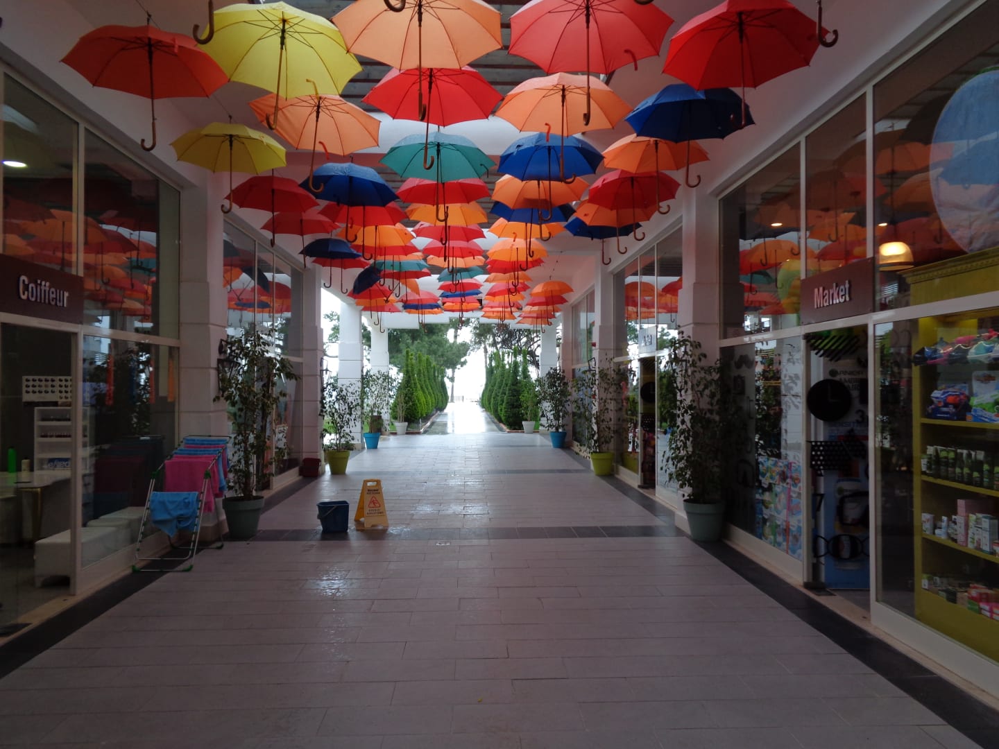 Witzig dekoriert die kleine Einkaufspassage!
