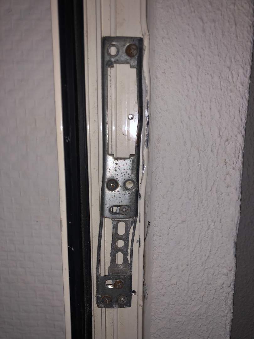Hier die Tür bzw. Das Scharnier nach der „Reparatur“ .. abends um 22:30 kamen 2 Fachmänner die einfach wild mit einer Zange draufgeprügelt haben das sogar das Nachbarzimmer kam und fragte was bei uns los sei.