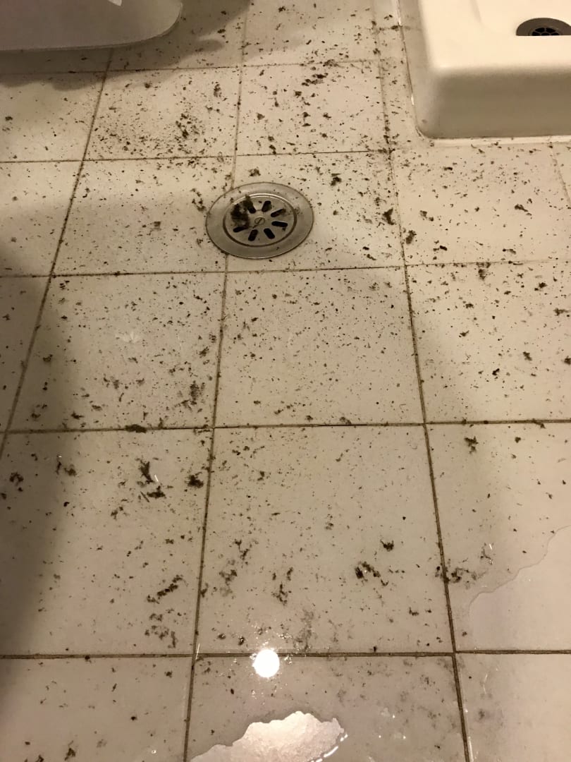 Zimmeram Morgen kurz vor der Abreise drückte es diese Dreckbrühe aus dem Abfluss am Boden beim betätigen der Toilettenspülung