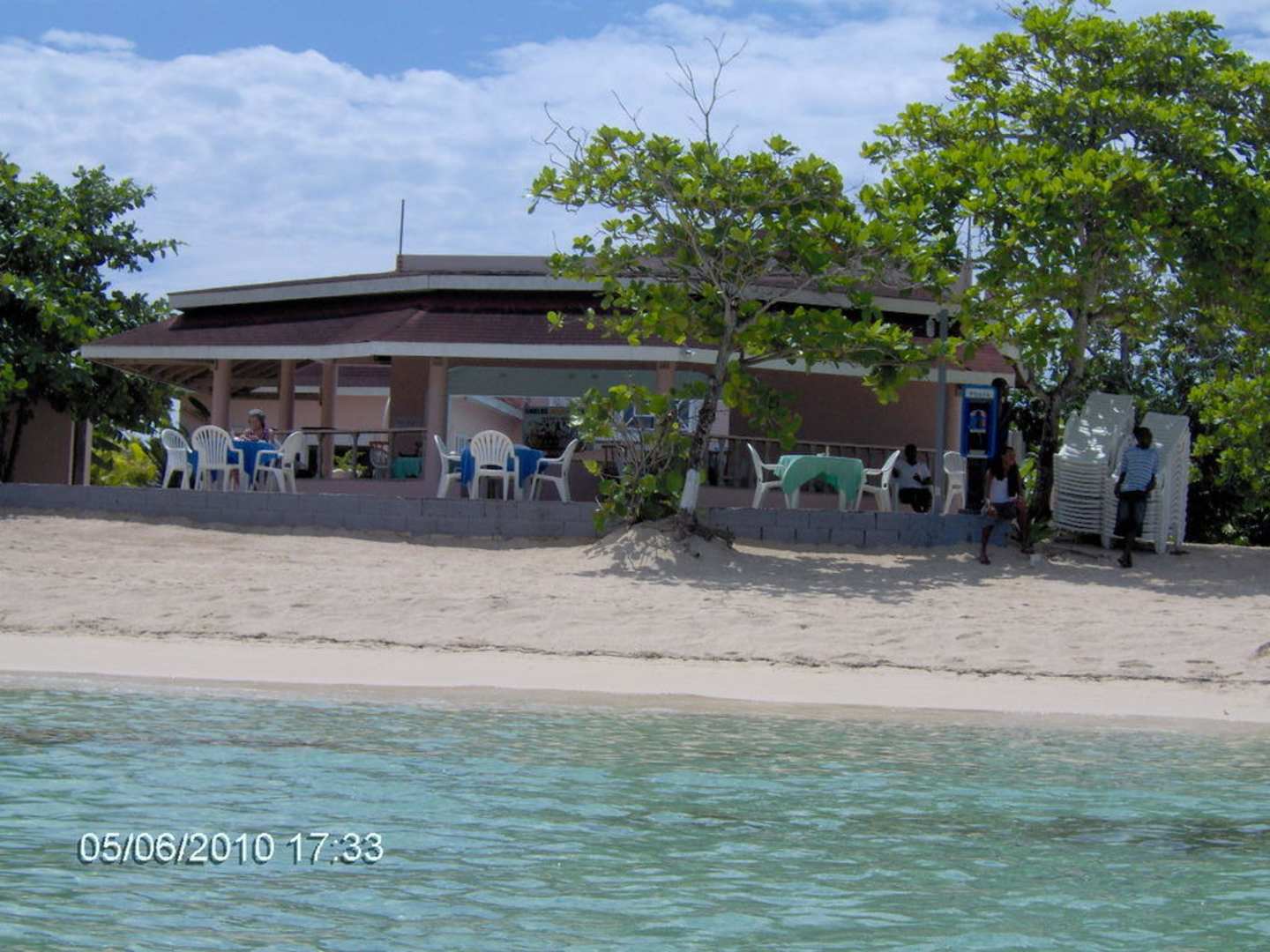 Open Air Bar und Frühstückstische vom Meer aus
