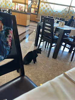 Katzen laufen im ganzen Restaurant rum. Gehen an die Teller. Nein no Go.