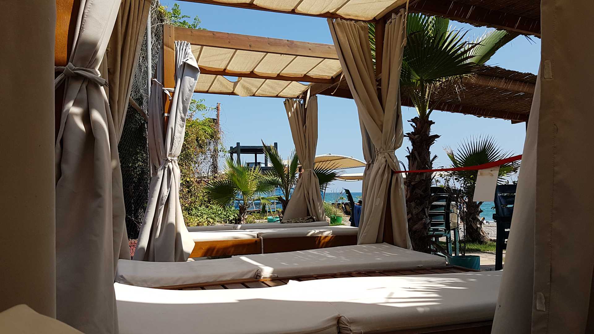 Ausblick von einem Cabana am Strand
