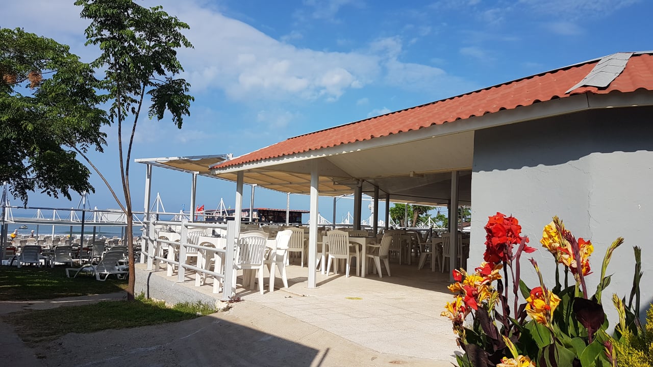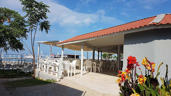 Strandbar mit Liegen davor