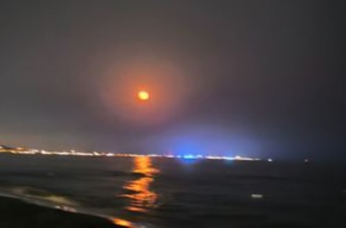 Der Erdbeermond im Juni 2025 am Strand