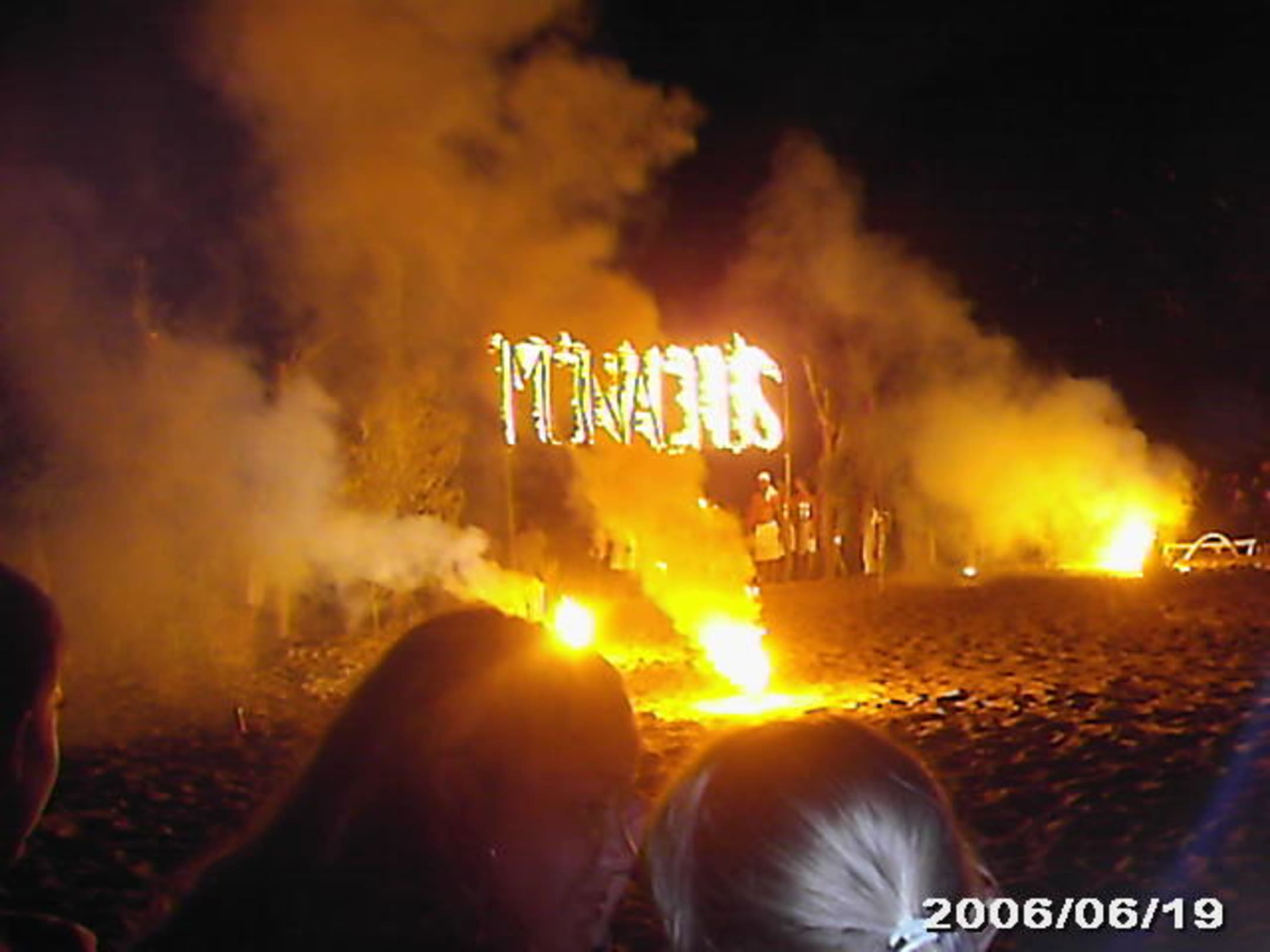 brennendes Monachusschild während der Beachparty