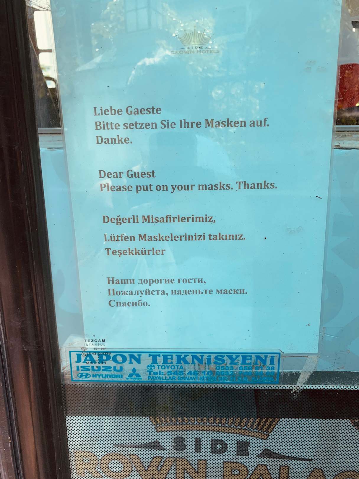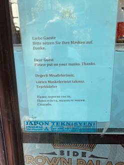 SonstigesMann wird hingewiesen in jeder Sprache Maske zu tragen leider die Gäste achten nicht darauf.