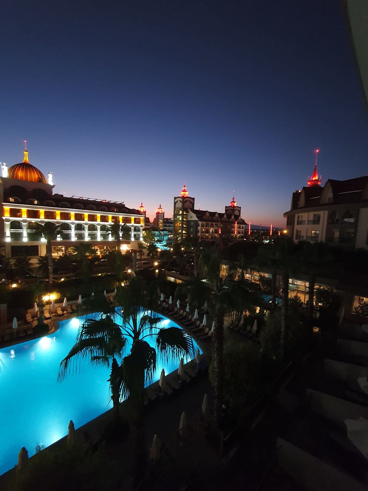 Blick vom Balkon bei Nacht.
