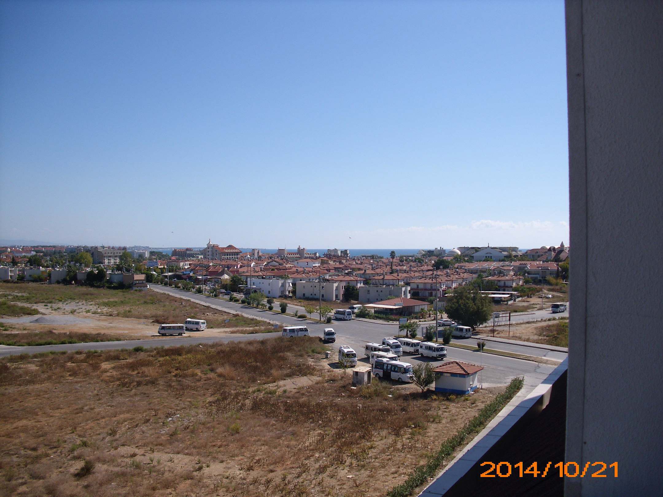 Blick vom Balkon auf Busstation am Hotel