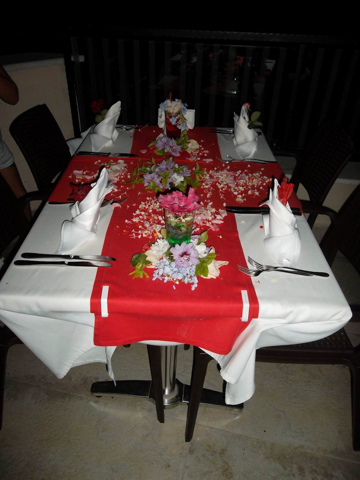 Bekamen 2 x so einen schönen Tisch zum abendessen