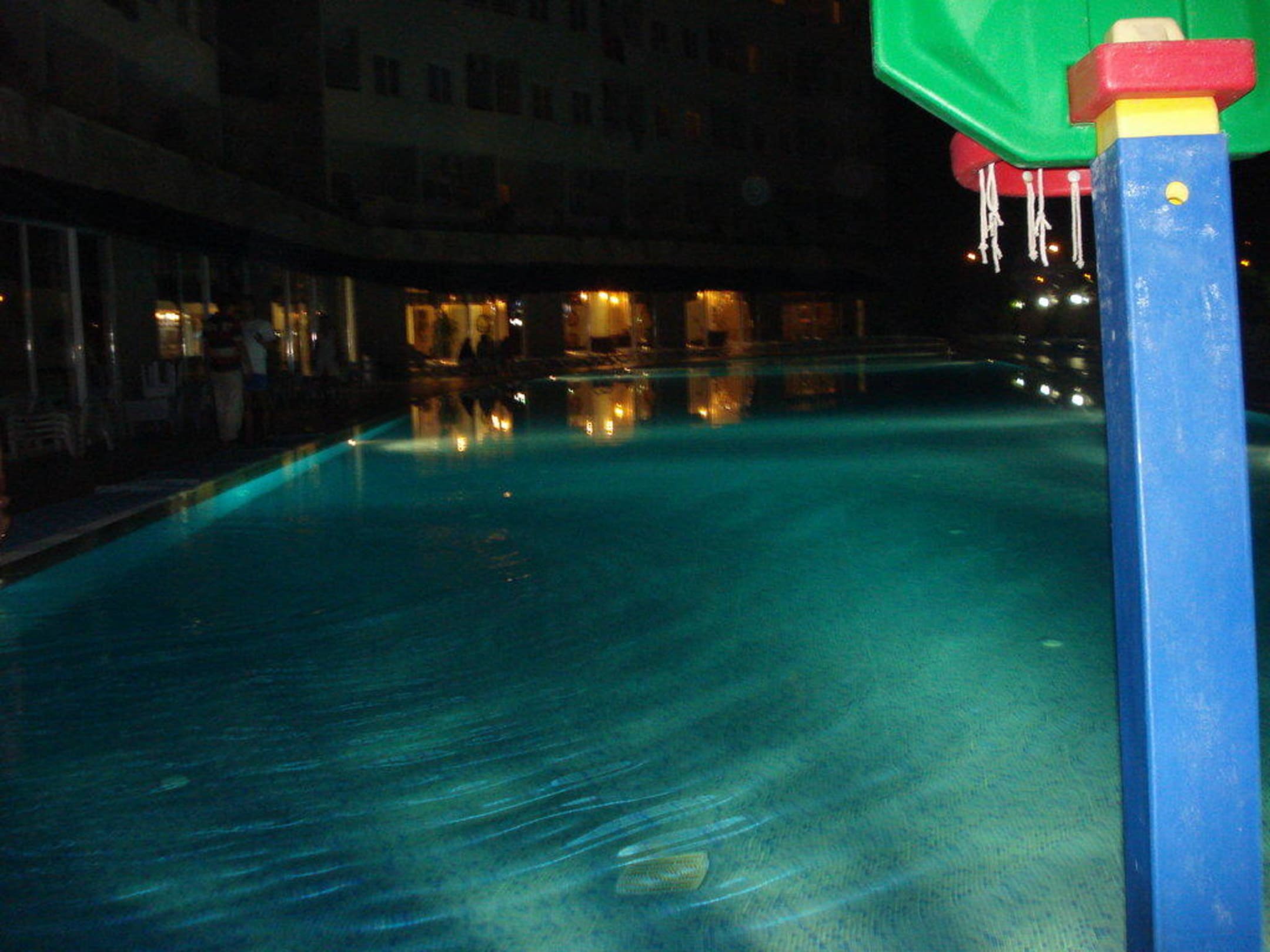 Pool bei NachtHinter dem großen Pool befand sich noch ein kleiner Pool mit 2 Rutschen! Die waren Stundenweise im Betrieb!
