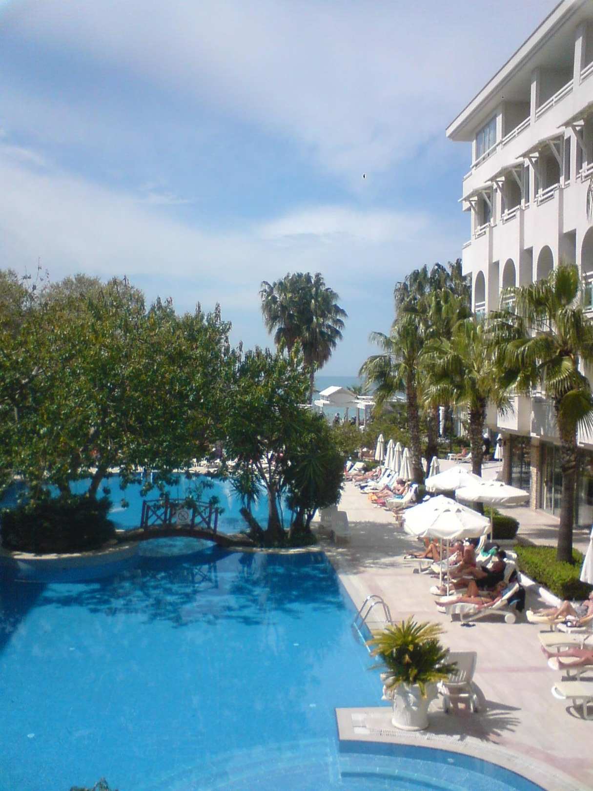 Blick von der Dachterrasse zum Pool