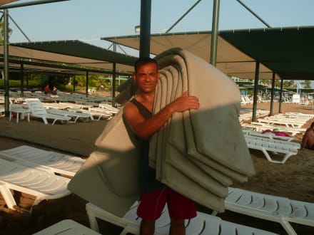 Bülent beim AufräumenAli und Bülent waren abwechselnd die Strandboys, gut das sie abends meist zu zweit gearbeitet haben... sehr anstrengend!