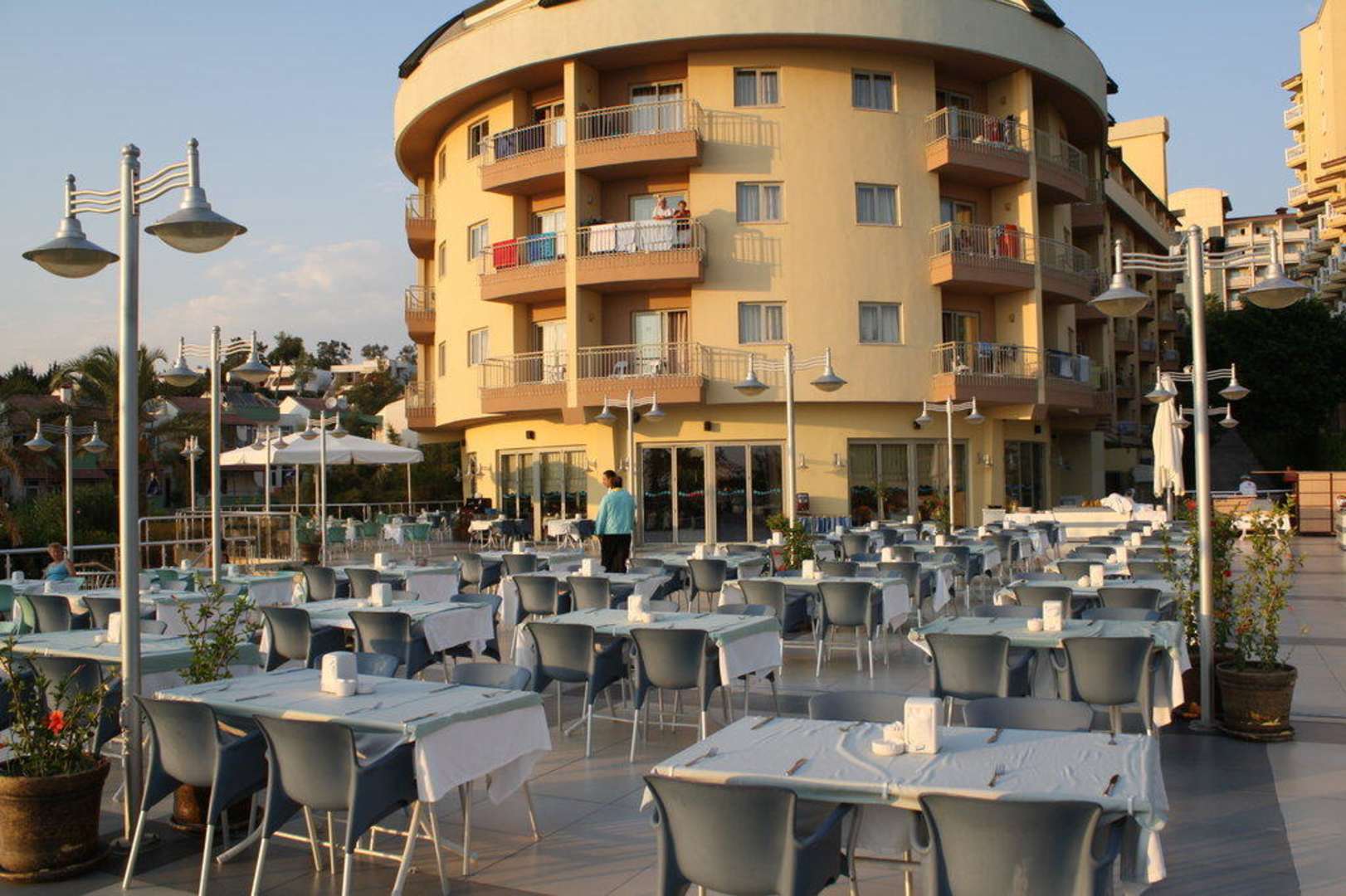 Außenrestaurant dahinter das Hotel