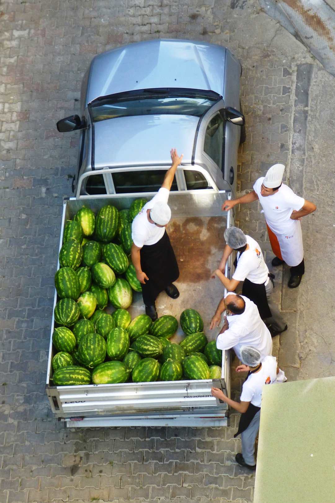 Melonenlieferung - Aufnahme vom Balkon 800. Zimmer