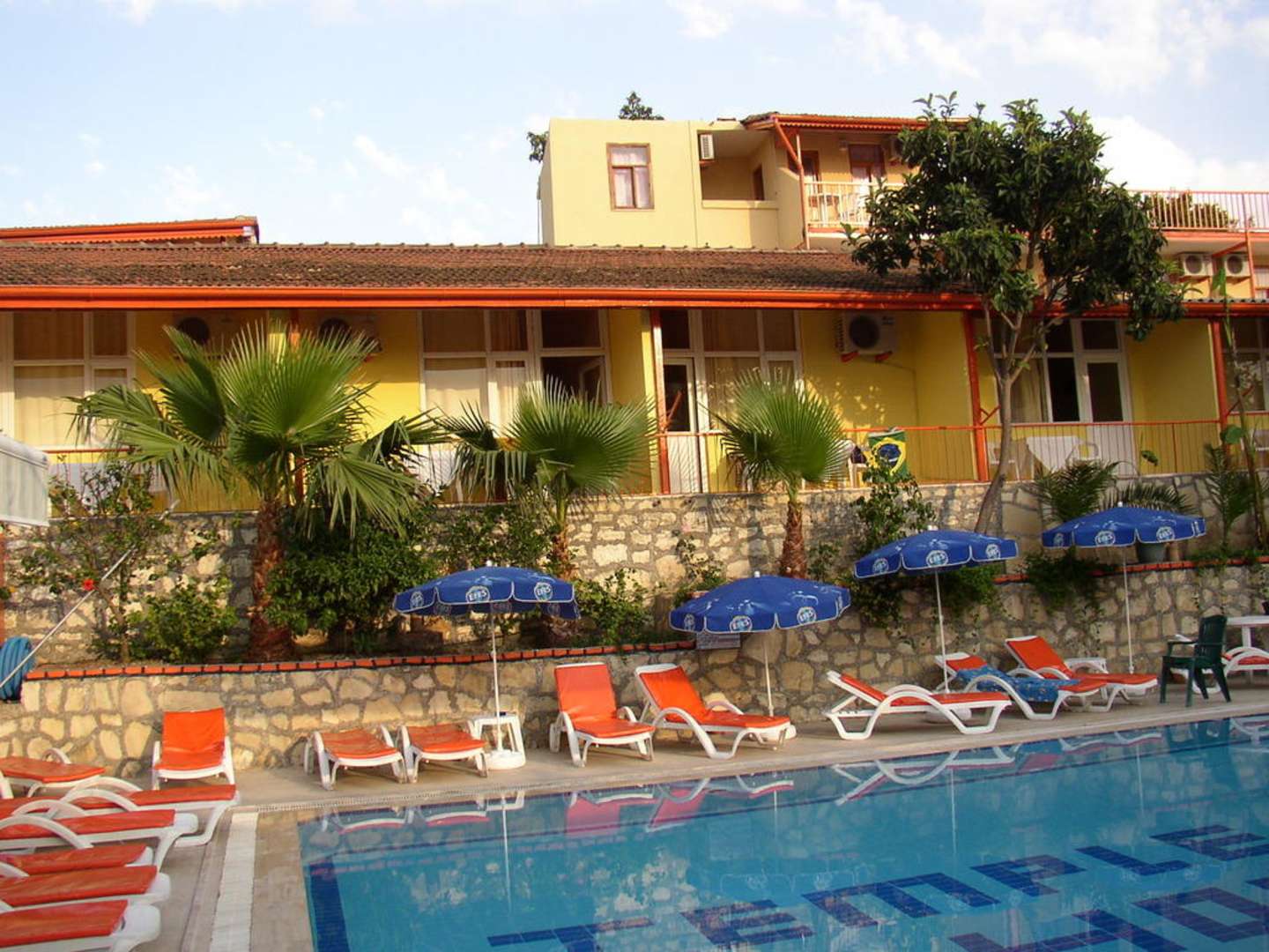 Zwembad met een deel van het hotel