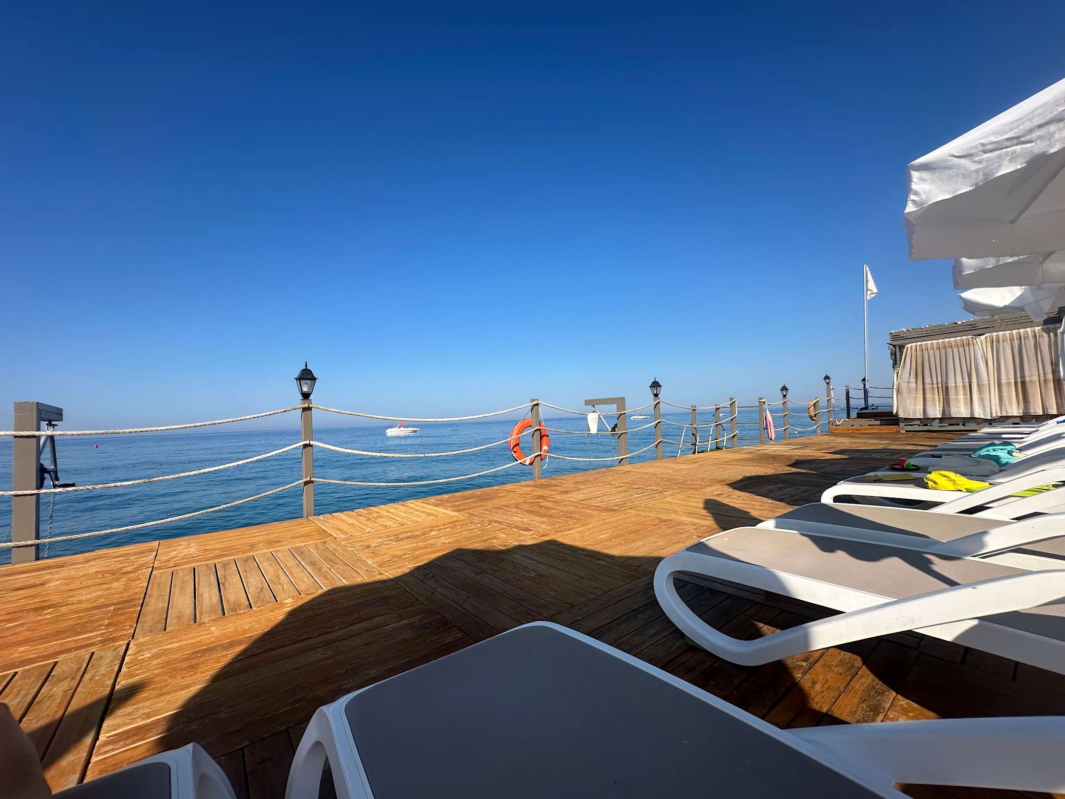 Blick aufs Meer vom Badesteg