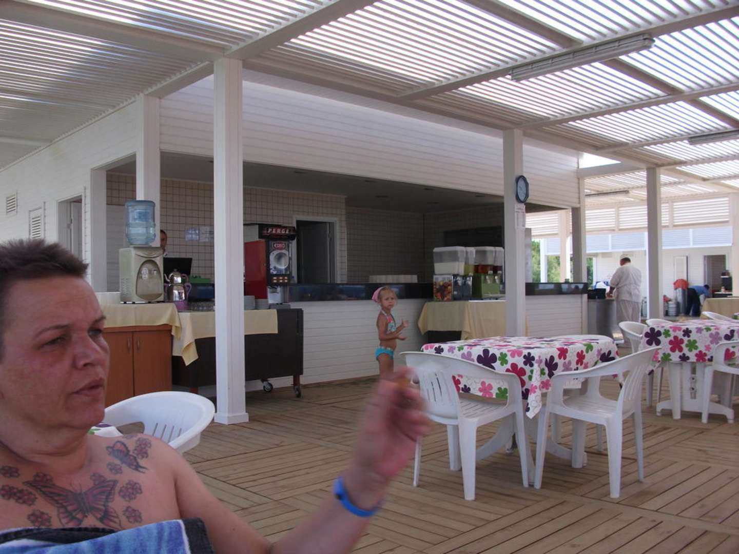 StrandbarHier kann man schön zu Mttag essen, und hat auch hier genug Schatten. Die Srandbar ist neu gebaut und hat auch neue Toilettenanlagen.