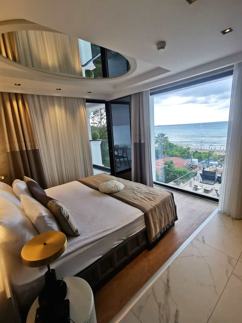 Großes Doppelbett mit direktem Meerblick