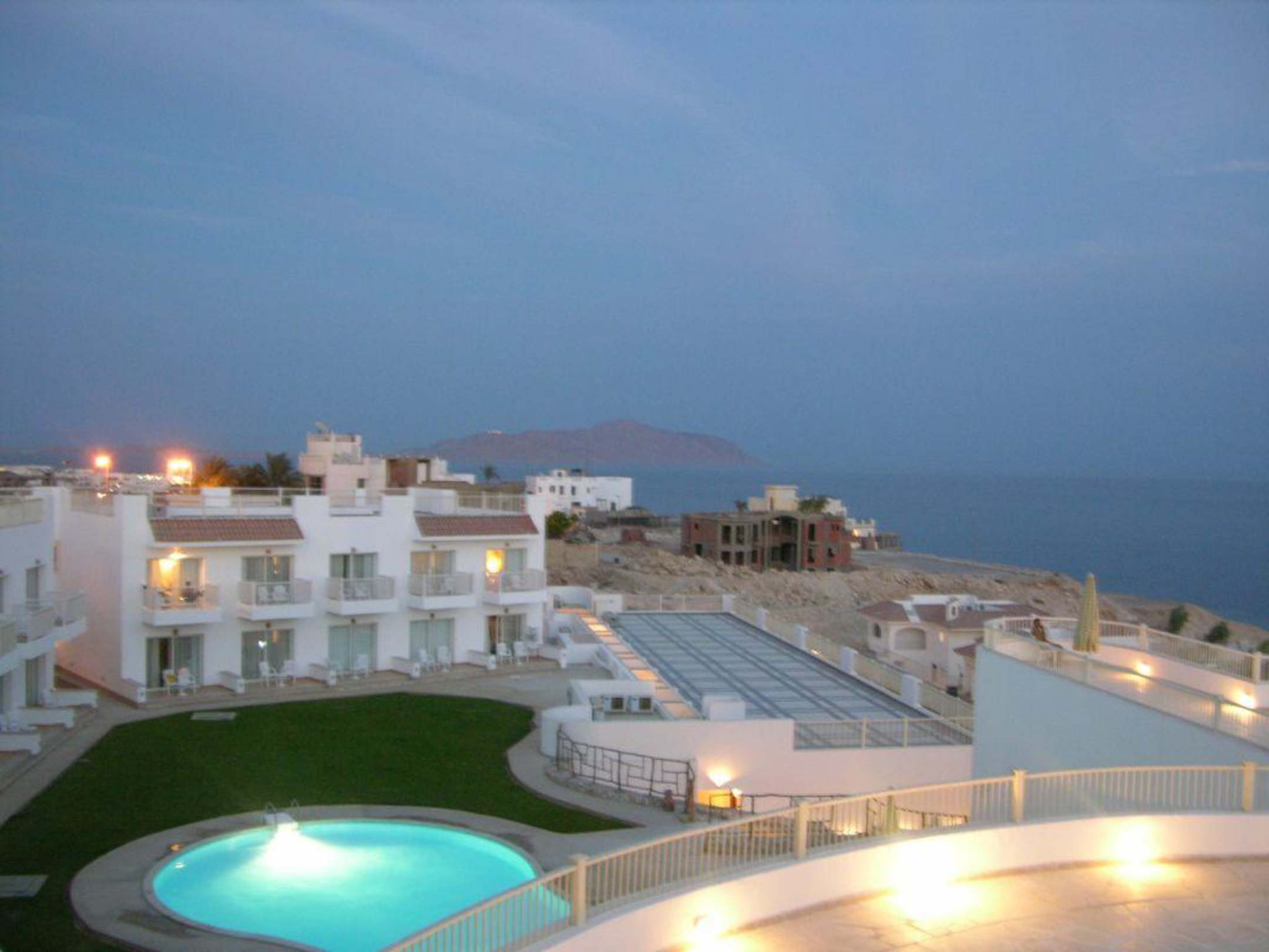 wodok z najwyzszego pieta na budynek bungalowy z basenem