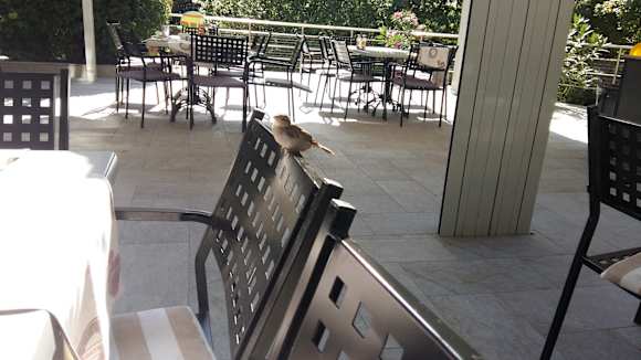ein netter Nachbar. die Terrasse draußen