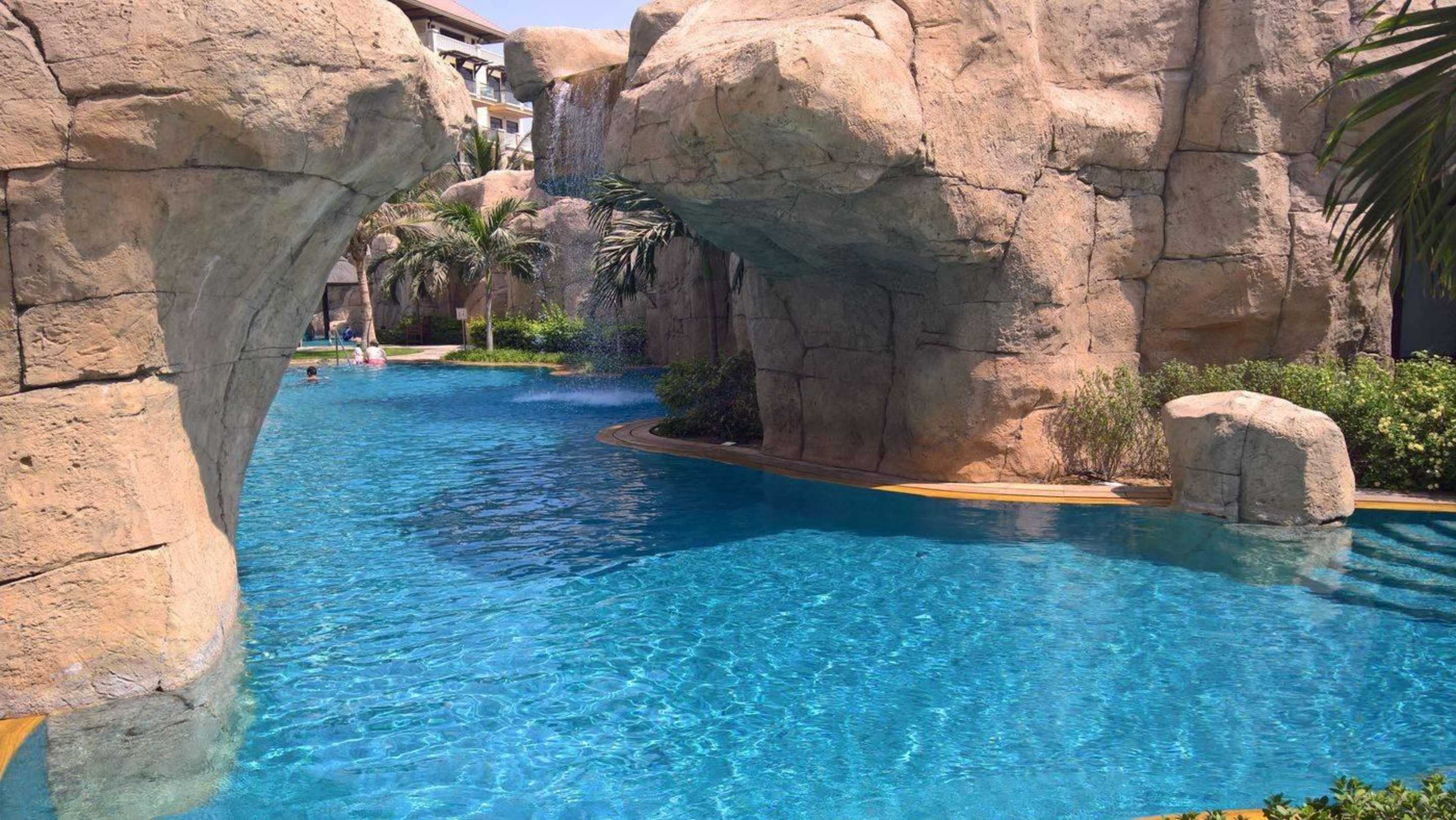 Pool mit Wasserfall beim Nebengebäude