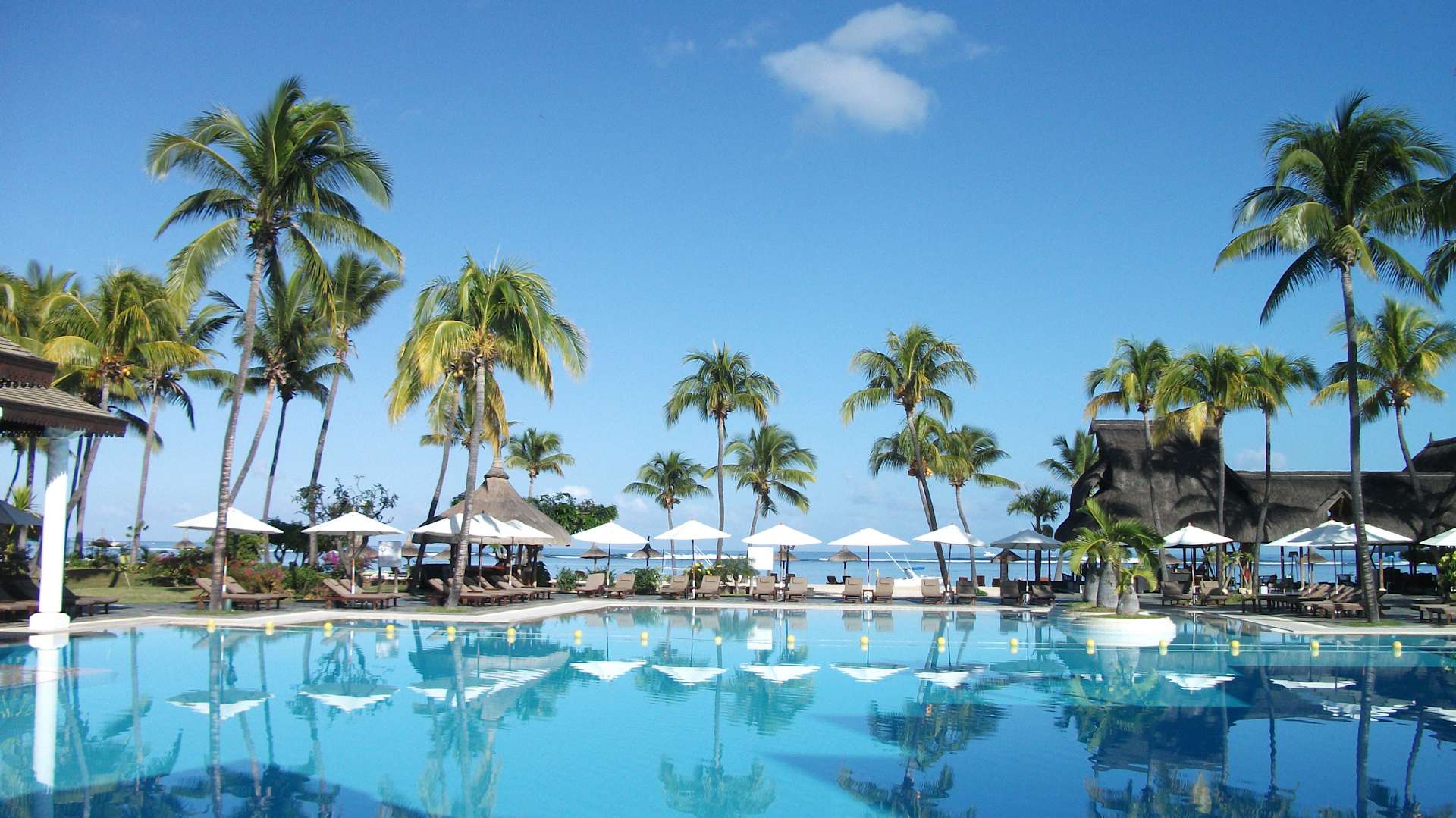 Blick von der Lobby über den Pool zum Meer
