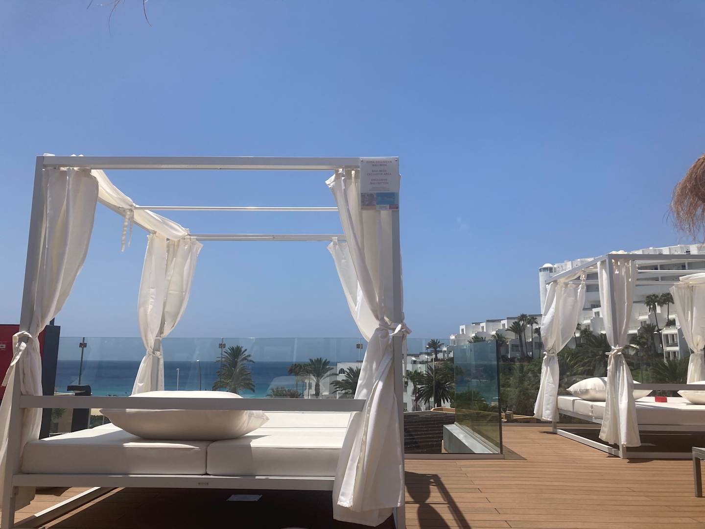 PoolBali Beds (kostenpflichtig) auf separater Liegen-Ebene (es gibt dort auch normale Liegen mit Schirm - kostenfrei) mit Blick aufs Meer.