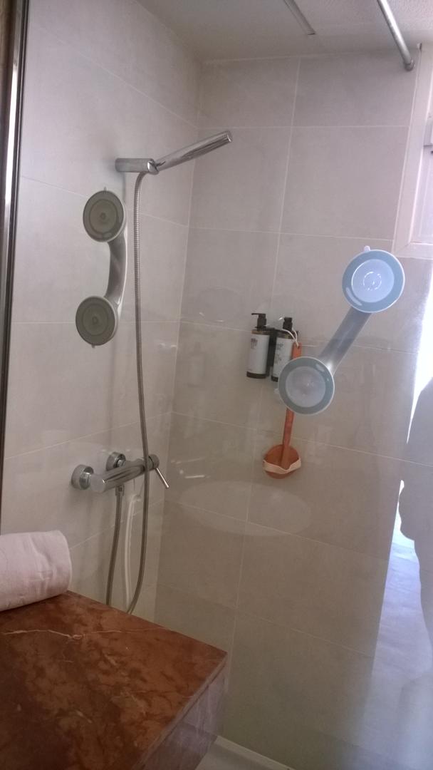 Diese Haltegriffe nehme ich seit Jahren mit. Fürs Gleichgewicht.