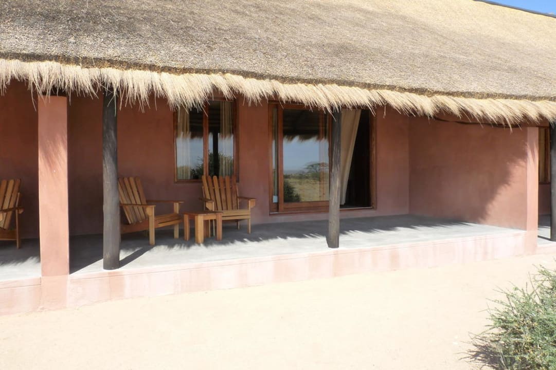Terrasse vor den Zimmern