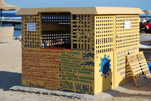 Handtuchstation am Strand