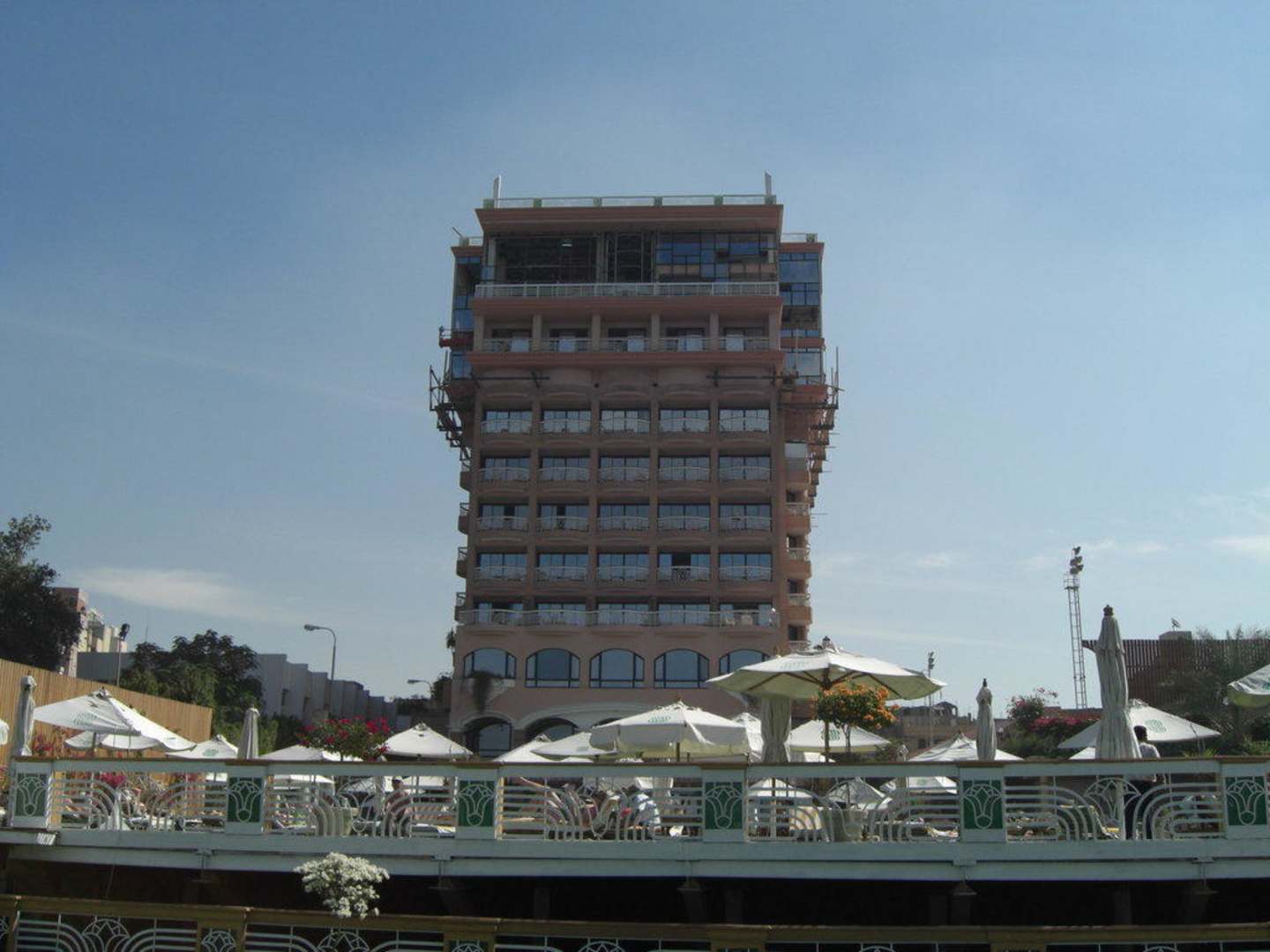 Fertige Frontansicht von der Nil-/Poolseite nach Beendigung der äußeren Bauarbeiten.