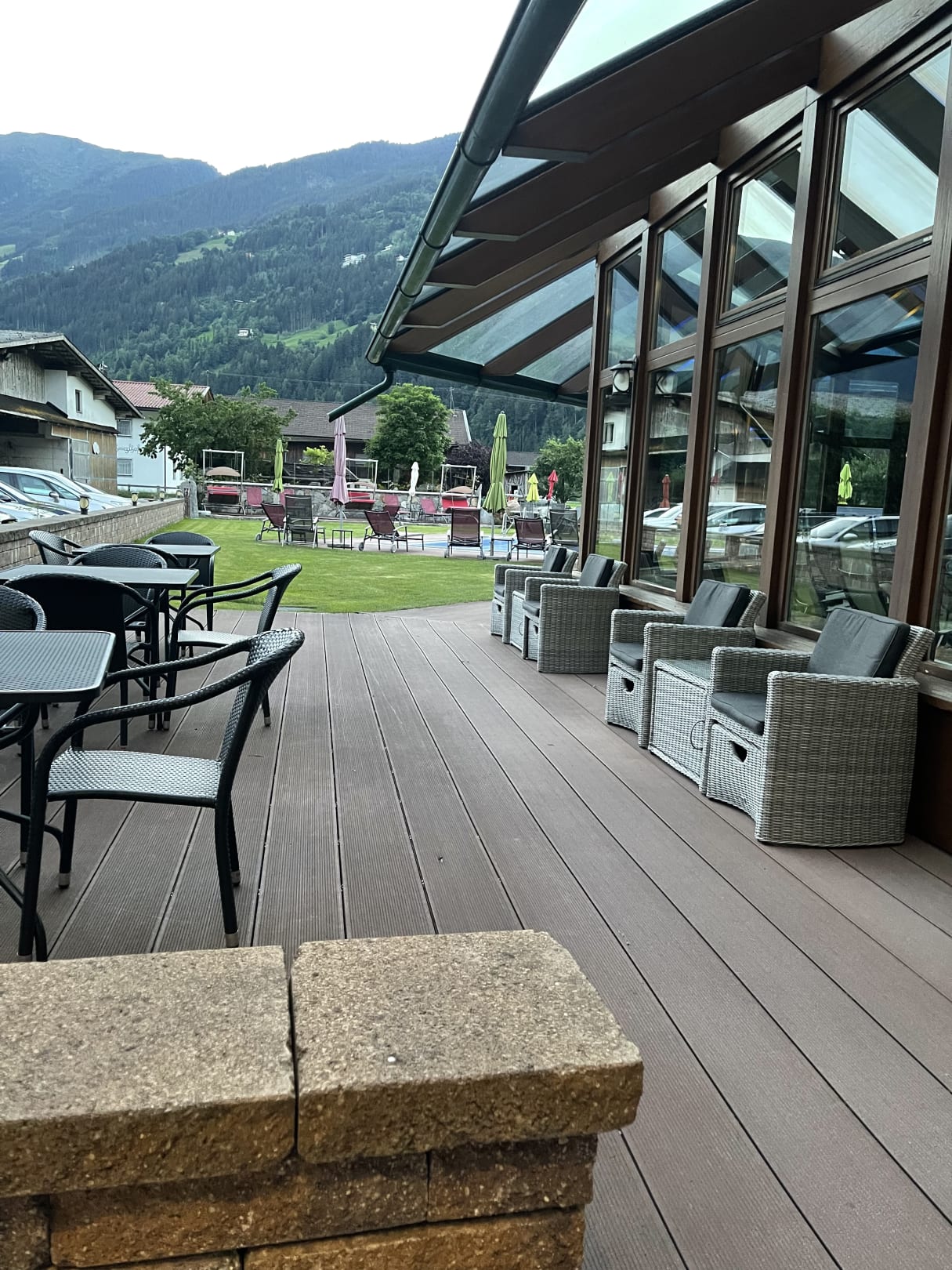Terrasse mit anschliessendem Aussenpool.