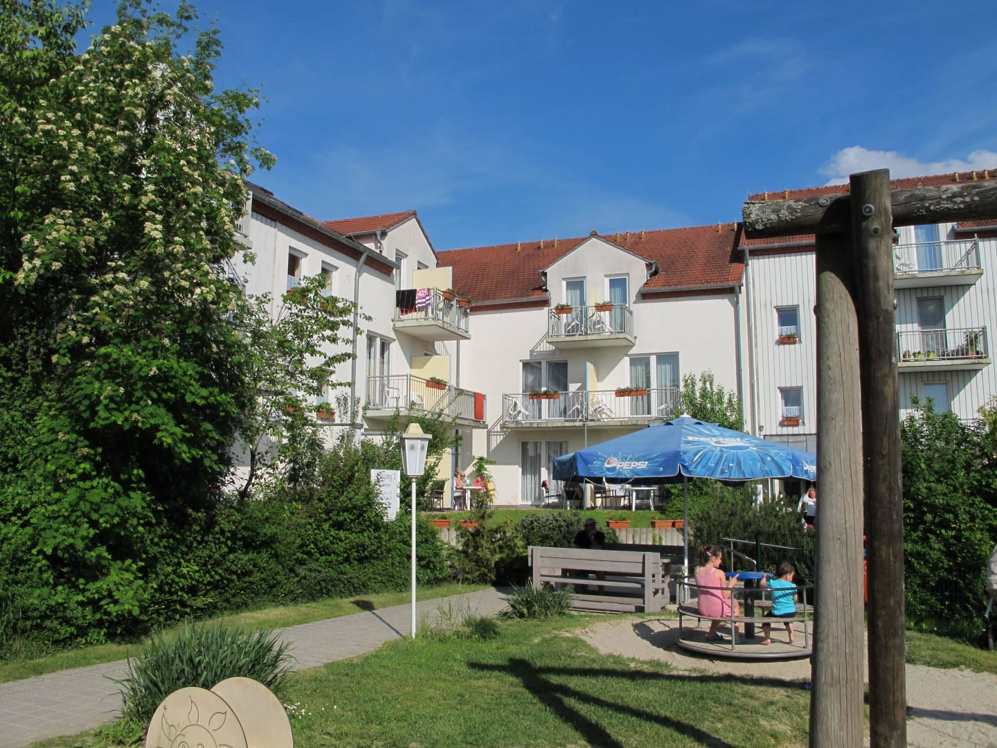 Außenansicht mit Spielplatz