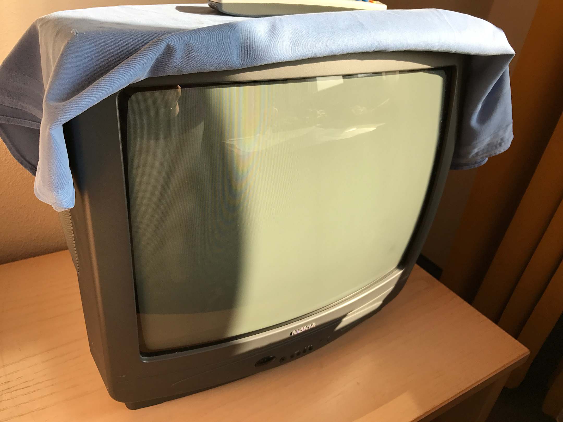 ZimmerAlt-TV. Funktion nicht getestet. In unserem Appartement gab es zusätzlich noch ein moderneres Gerät, das wir aber auch nicht getestet haben.